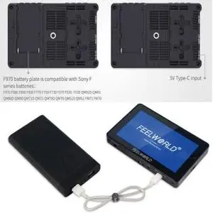 Окрім живлення через батарейний відсік F970 та вхідного живлення 12 В постійного струму, він також підтримує вхід 5 В Type-C, який можна живити від зарядного пристрою для мобільного телефону або зовнішнього акумулятора. (Принаймні 5 В/2 А). Примітка: Порт 5 В Type-C використовується лише для живлення, а не для передачі даних, і не може забезпечити вихідне живлення.