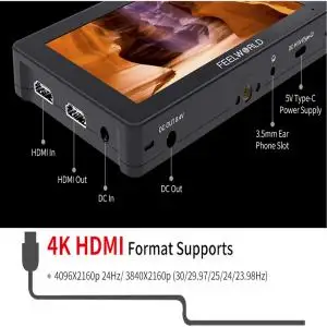 FEELWORLD F5 Pro V4 – ідеальний монітор для фотокамери, що використовується як дзеркальні фотокамери (DSLR), так і бездзеркальні. F5 Pro забезпечує додатковий вихід живлення, що дозволяє фотографам живити свої камери. Завдяки кабелю-адаптеру (опціонально) F5 Pro збільшує час роботи камери, забезпечуючи при цьому зручніший дисплей.